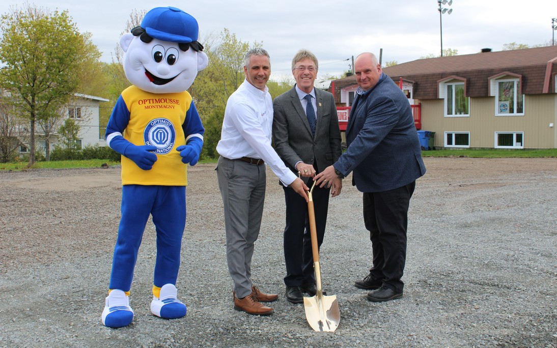 Afin de lancer officiellement les travaux, le maire de Montmagny, M. Rémy Langevin, MM. Stéphane Coulombe, président du club Optimiste de Montmagny et Jessy Croteau, conseiller municipal et membre du conseil d'administration de la Maison des Jeunes de Montmagny, de même que la mascotte Optimousse, se sont réunis sur le site pour la traditionnelle première pelletée de terre.