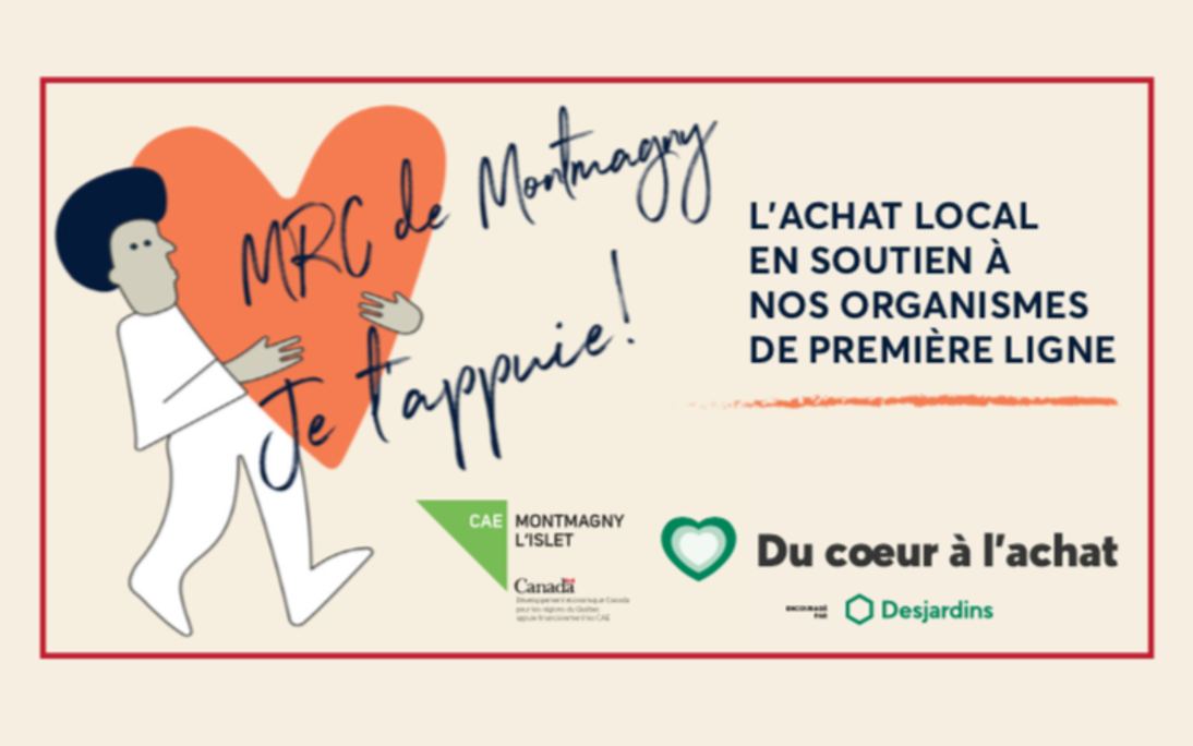 Le Centre d'aide aux entreprises (CAE) Montmagny-L'Islet a annoncé le 18 juin dernier le lancement d'une campagne de financement participatif qui vise à soutenir les commerces et les organismes de première ligne les plus touchés par la COVID-19 de la MRC de Montmagny. Cette campagne souhaite susciter un élan de solidarité en vue de soutenir l'économie locale et la communauté, particulièrement les gens les plus fragilisés par la situation. Avec un objectif de 25 000 $, la campagne se déploiera sur le site de La Ruche jusqu'au 23 juillet 2020. En outre, elle pourra compter sur le soutien financier de Desjardins, par l'entremise de son programme Du coeur à l'achat, qui doublera l'objectif de la campagne, jusqu'à concurrence de 25 000 $. La totalité de cette contribution sera partagée entre les organismes communautaires associés à la campagne.