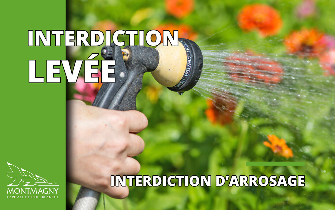 La Ville de Montmagny désire informer la population de la levée de l'interdiction d'arrosage à compter de ce vendredi 26 juin. De plus, le Service de la sécurité incendie et de la sécurité civile autorise les feux à ciel ouvert à compter de 18 h ce vendredi 26 juin sur le territoire de Montmagny et de Cap-Saint-Ignace.