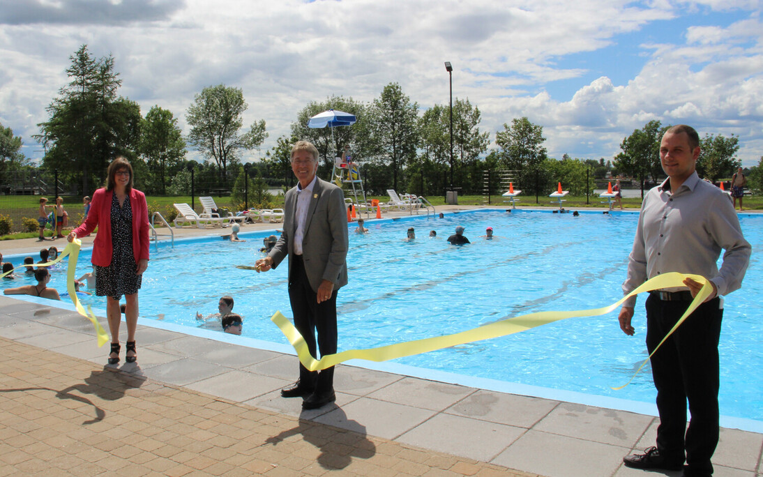 Un peu plus de 1,5 million de dollars auront donc été nécessaires pour démolir et reconstruire les bassins, remplacer la pataugeoire par une nouvelle zone de jeux, changer les équipements mécaniques et de traitement des eaux, agrandir le bâtiment de services pour y inclure un local technique, installer une pergola et effectuer l'aménagement paysager. De ce montant, la Ville a pu compter sur une aide financière de 168 666 $ provenant des deux paliers de gouvernement par l'intermédiaire du Fonds des petites collectivités, un volet du Programme Nouveau Fonds Chantiers Canada-Québec.