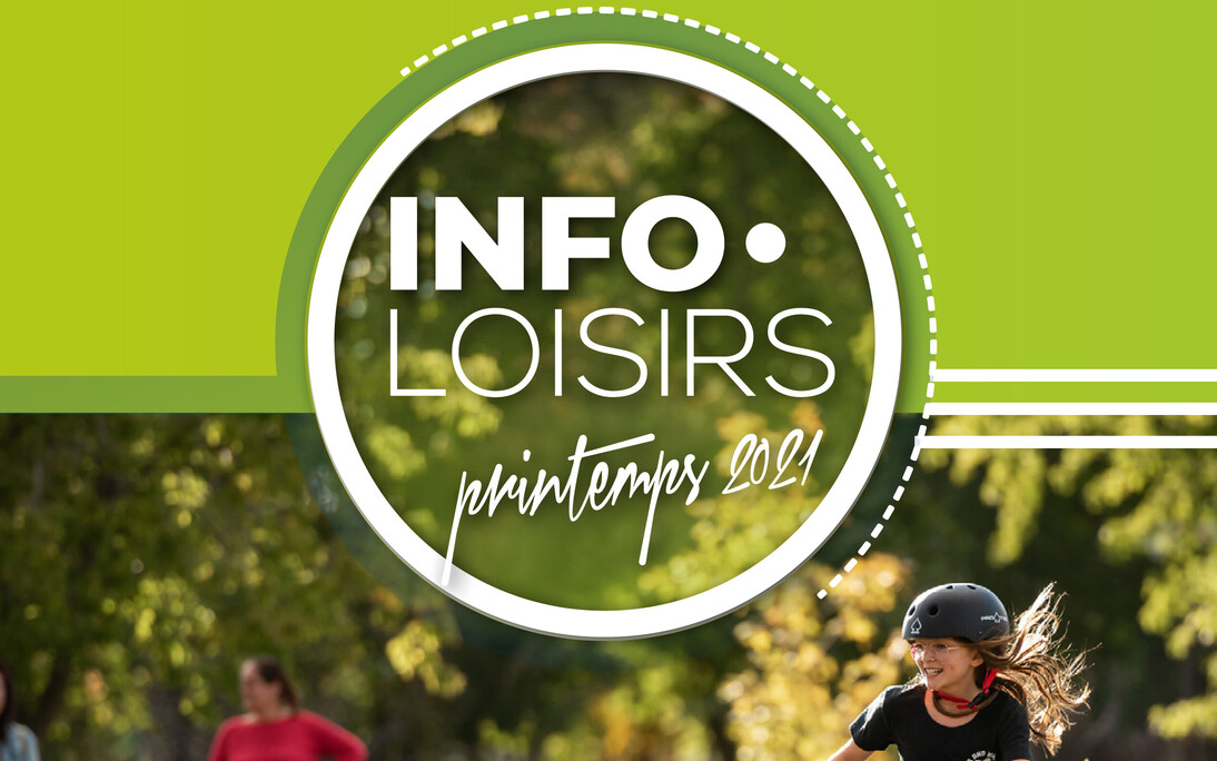 L'Info-loisirs printanier était disponible, mais est maintenant en révision pour ajuster l'offre d'activités socioculturelles et sportives aux restrictions en vigueur dans les zones rouges. La période d'inscription en ligne devrait toujours s'amorcer au retour du congé de Pâques, soit le jeudi 8 avril dès 18 h.