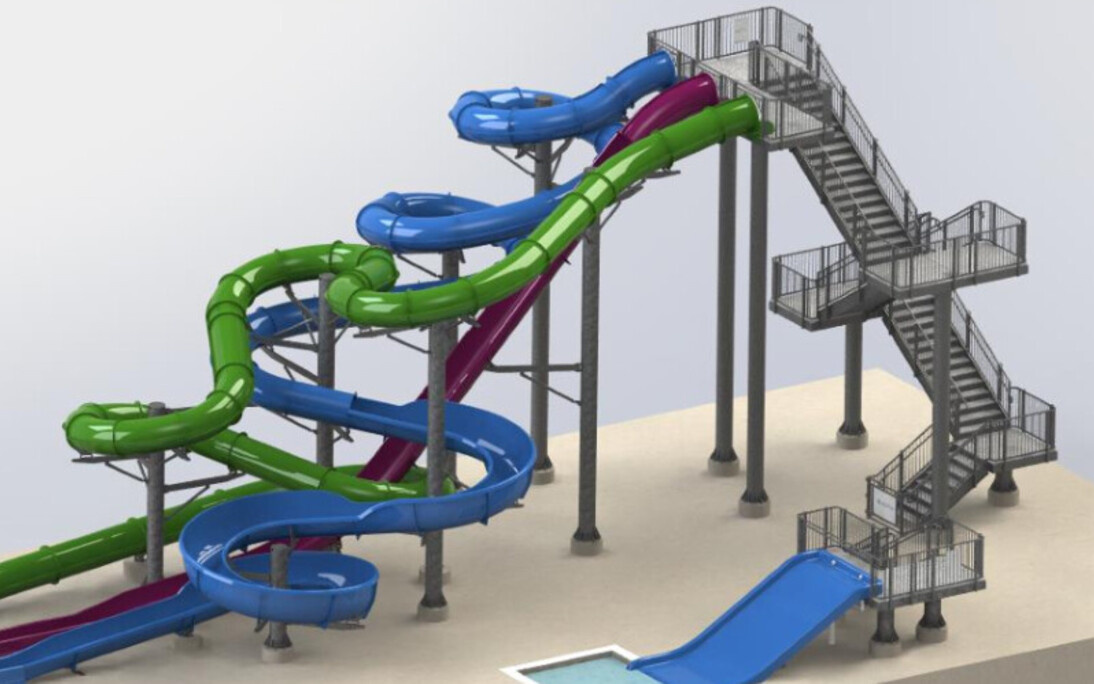 La bonne nouvelle dans tout cela est que la configuration et les couleurs des futures glissades d'eau qui atteindront 10 mètres de hauteur sont officiellement déterminées. Le bleu, le violet et le vert sont les couleurs ayant été privilégiées pour notamment éviter qu'elles ne pâlissent trop rapidement au soleil. Soulignons également qu'une glissade destinée aux tout-petits est aussi prévue à la structure aquatique afin que toute la famille puisse en profiter pleinement.