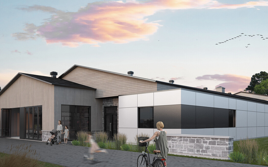 À terme, le bâtiment aura une superficie d'environ 1336 mètres carrés et comprendra entre autres une grande salle communautaire avec cloisons modulables, une cuisine, un hall d'entrée entièrement reconfiguré pour le rendre plus fonctionnel, un vestiaire, deux vestibules ainsi que quatre salles de toilettes dont deux adaptées et accessibles de l'extérieur. Soulignons qu'un montant de 57 739 $ est prévu pour l'intégration d'une oeuvre d'art dans le projet.
