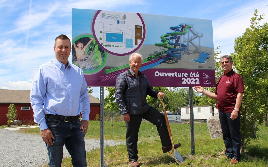 Ça y est! L'idée lancée par le directeur du camping municipal Pointe-aux-Oies, M. Raymond Gaudreau, prendra vie au cours des prochaines semaines. Le coup d'envoi symbolique du chantier des glissades d'eau a en effet été donné par le contremaître de Construction Couture & Tanguay, M. Jonathan Audet, le maire de Montmagny, M. Bernard Boulet, et le président du camping et conseiller municipal, M. Gaston Morin.