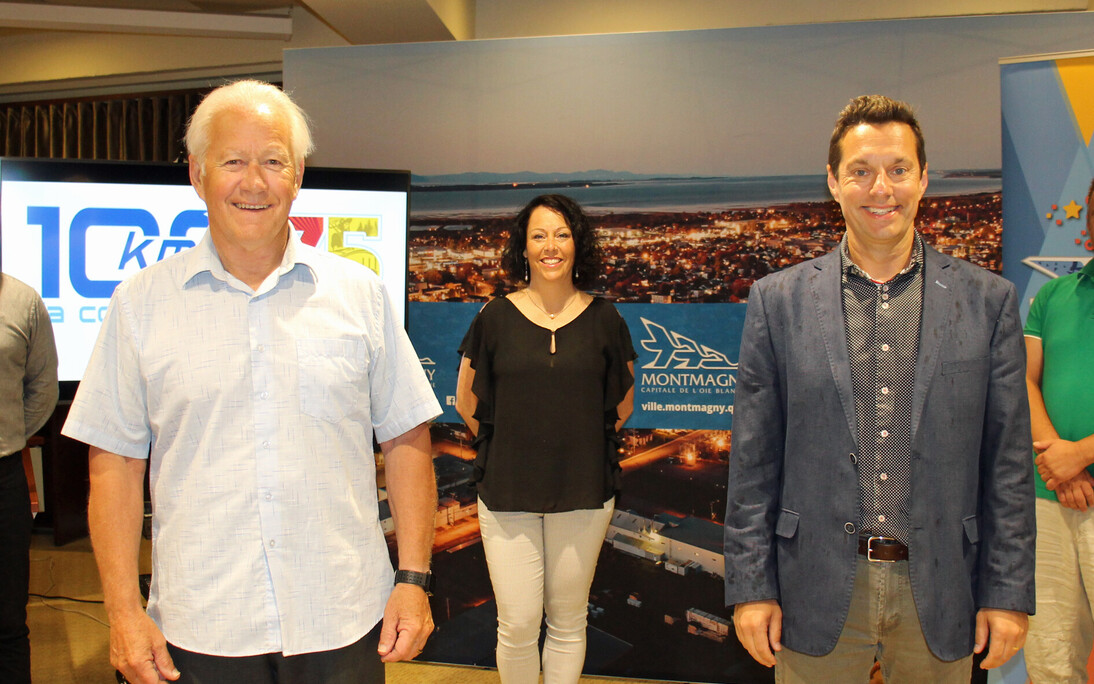 Sur la photo, dans l'ordre habituel : Messieurs Jonathan Carrier, organisateur, et Bernard Boulet, maire de Montmagny et organisateur, Mme Annie Gagnon, organisatrice, de même que messieurs Yves Fournier, organisateur, et Jean-François Roy, coordonnateur des Fêtes. Absents sur la photo, les autres membres du comité organisateur : Phong Bui, Jean-Jacques Gamache et Emmanuel Guay.