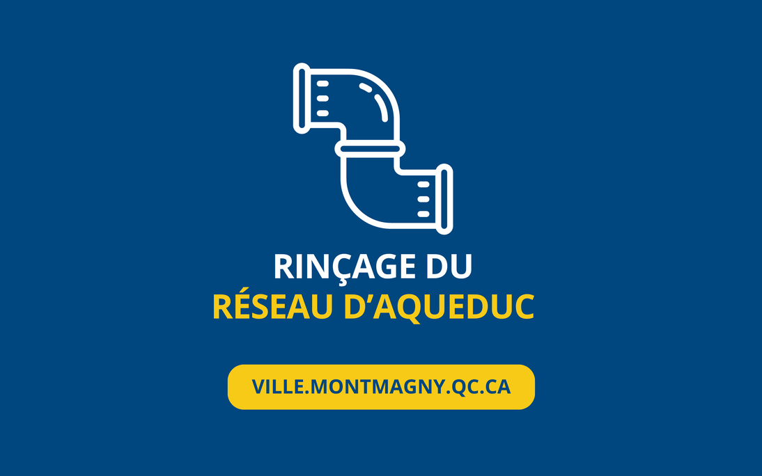 À partir du mercredi 2 octobre, la Ville de Montmagny finalisera le rinçage unidirectionnel de son réseau d'aqueduc qui s'échelonnera durant quelques semaines. L'intervention reprendra dans le secteur de la 11e Rue et de la 12e Rue.