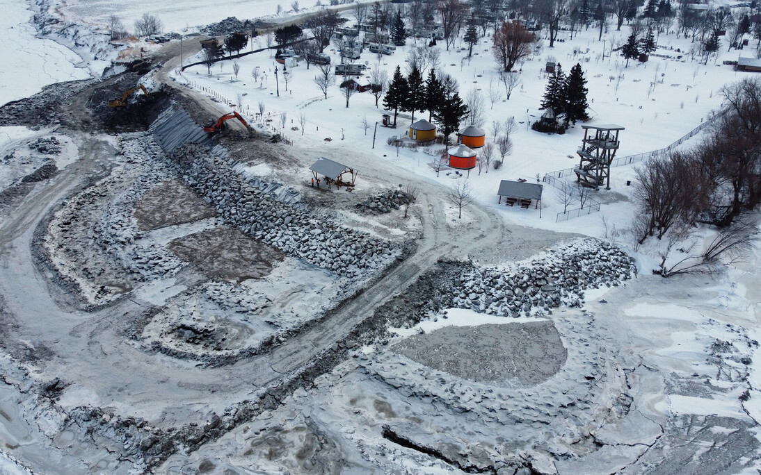 Les travaux d'enrochement et de reconstruction du haut marais, réalisés dans le cadre du chantier de stabilisation des berges dans le secteur de la Pointe-aux-Oies, se termineront d'ici la fin du mois de février, devançant ainsi l'échéancier initialement prévu.