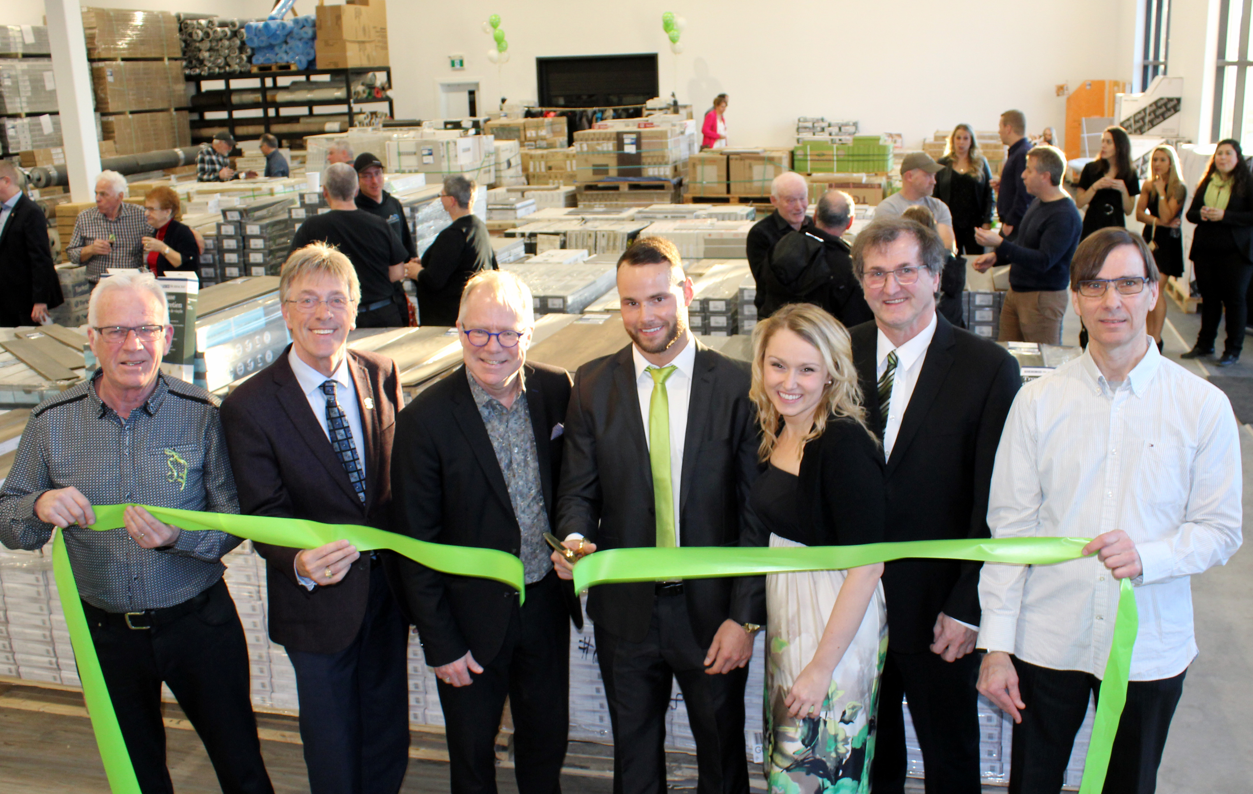 Sur la photo, on aperçoit Bertrand Chabot (employé), Rémy Langevin (maire de Montmagny), Yvan Pelletier (président de la bannière Déco Surfaces), Michaël, Michet et Valérie Mercier (propriétaires d'Atelier Décor Mercier et du nouveau Déco Surfaces l'Entrepôt) et Alain Vézina (employé).