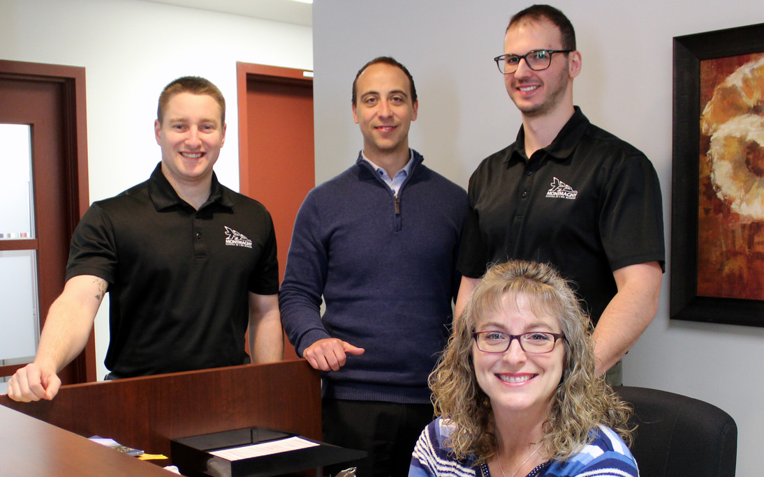Sur la photo, on aperçoit l'équipe de la division permis et inspection. À l'avant : Julie Boutin, secrétaire aux ressources humaines et à l'urbanisme. À l'arrière : Félix Laflamme, inspecteur municipal, Keven Gagnon, superviseur aux permis et aux inspections, et Ludovic Larochelle, inspecteur municipal.