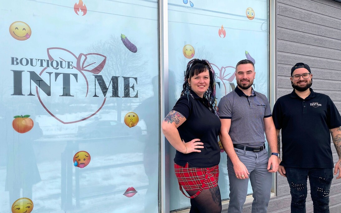 Photo: On aperçoit Carl Poulin, propriétaire, en compagnie de Casandra Théberge et Jonathan Giasson, responsables de la gestion et du service-conseil à la Boutique intime de Montmagny.