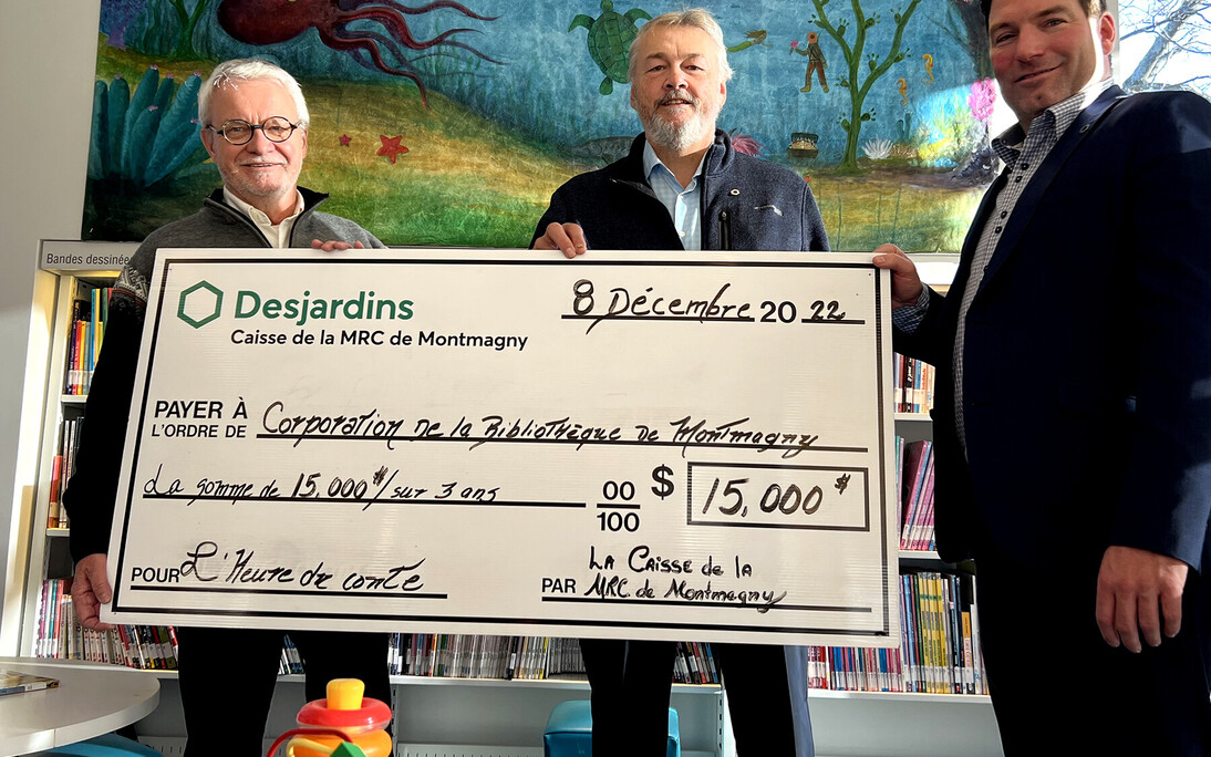 En plus de stimuler tous les aspects du développement de l'enfant, le premier des bénéfices relié à la lecture est sûrement celui du plaisir! Depuis son ouverture, la Bibliothèque de Montmagny offre, une fois par mois, un moment privilégié aux tout-petits et à leur famille avec l'Heure du conte. Fière de contribuer à nourrir la curiosité et l'imaginaire des futures générations, la Caisse Desjardins de la MRC de Montmagny réaffirme son appui à cette précieuse initiative, et ce, jusqu'en 2025.