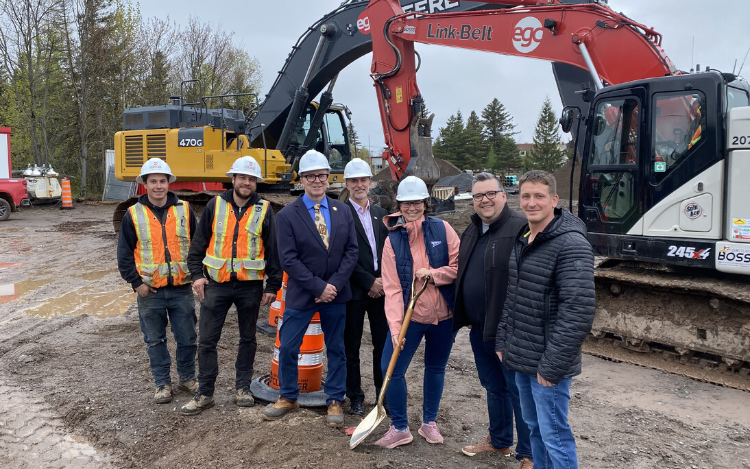 Sur la photo, on aperçoit MM. Louis et Philippe Cloutier des Entreprises Gilbert Cloutier, MM. Marc Laurin (maire), Félix Michaud (directeur général) et Mme Gabrielle Brisebois (conseillère municipale du district) de la Ville de Montmagny, ainsi que les promoteurs, MM. Sébastien Poulin et Jonathan McCluskey.